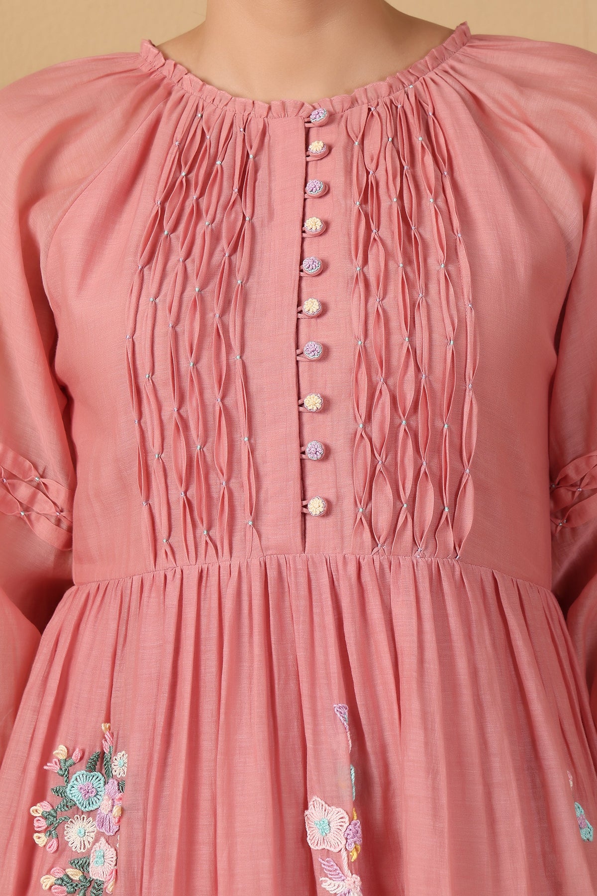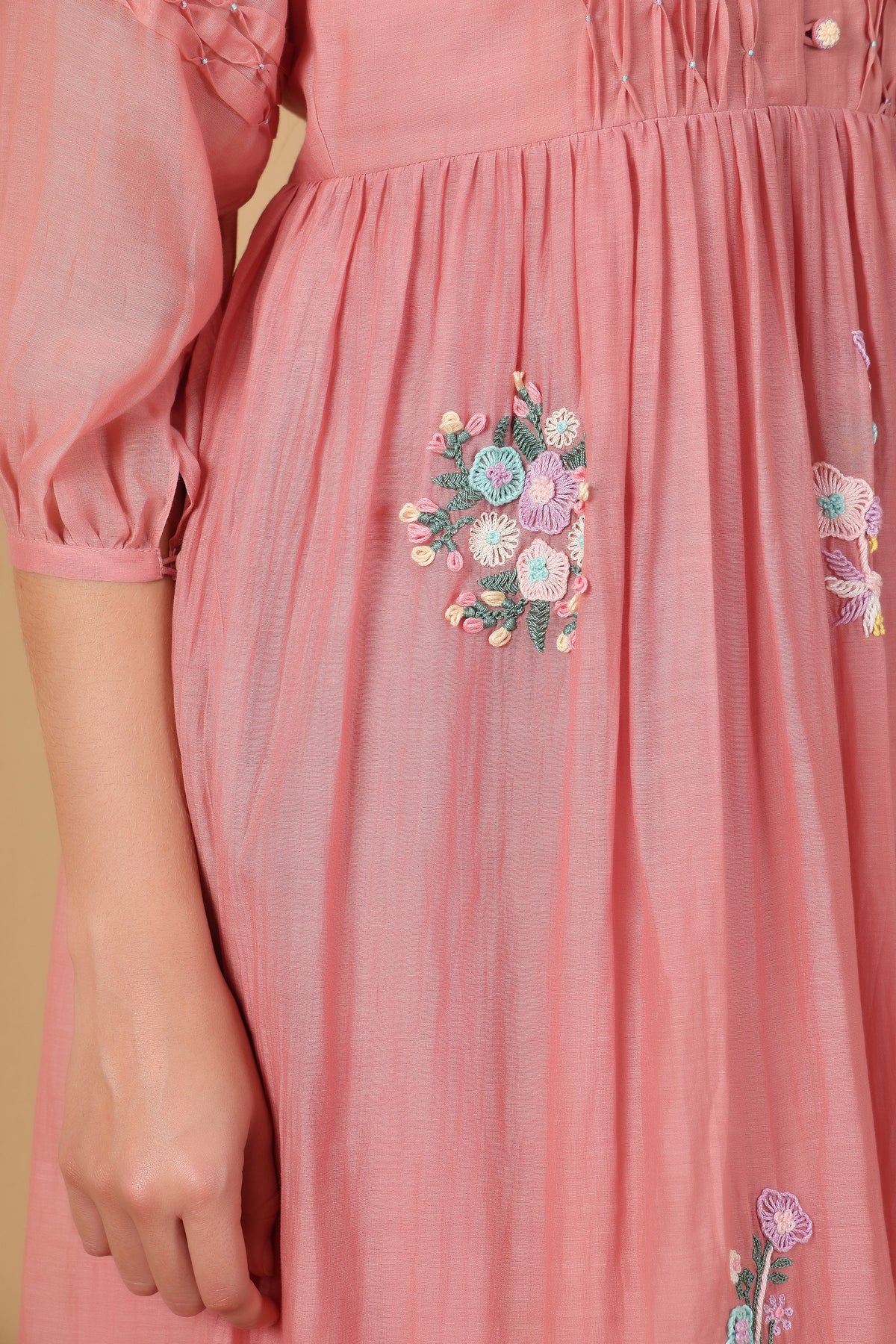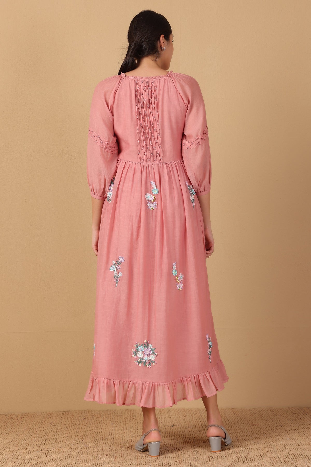 Radiate grace with this dress in Rose Pink, made from luxurious cotton silk. The soft, romantic hue complements its timeless silhouette, perfect for formal events or intimate evenings.